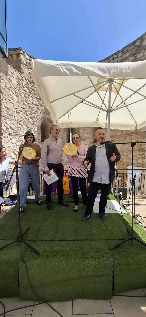 Foto AikeAlli, el Museo de Guadalajara y su Asociación de Amigos fueron distinguidos como Comuneros y Comuneras de Honor. Un reconocimiento a su gran labor en la difusión cultural y conservación del patrimonio. Fernando Aguado, director del Museo y M.ª Luz Crespo, vocal de la Asociación, recogieron la réplica del Ataifor de Guadalajara. Miguel Ángel Aguado, arqueólogo, deleito al público asistente con un maravilloso pregón en verso, cargado de referencias históricas y elogio al patrimonio de Guadalajara.