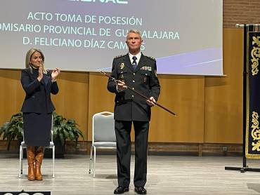 Feliciano Díaz en su toma de posesión en febrero de 2025. Estuvo acompañado por la entonces delegada de Gobierno, Milagros Tolón, hoy ministra de Educación