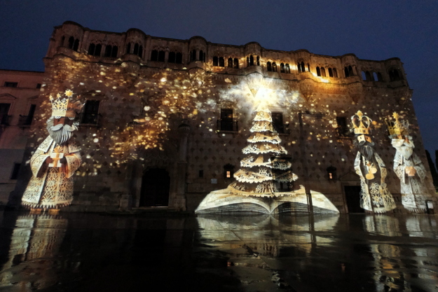 Una de las apuestas de los últimos años de la programación de Navidad - Año Nuevo del Ayuntamiento de Guadalajara es la proyección de un videos sobre las fachadas más emblemáticas de la ciudad.