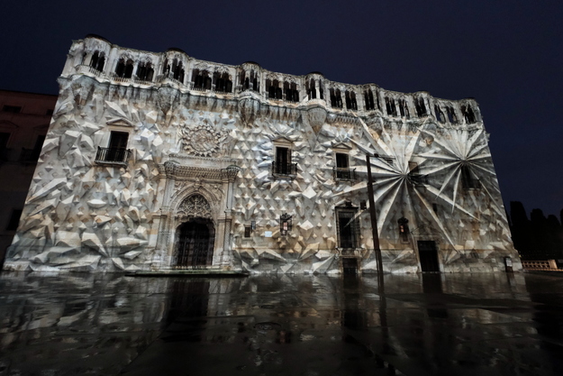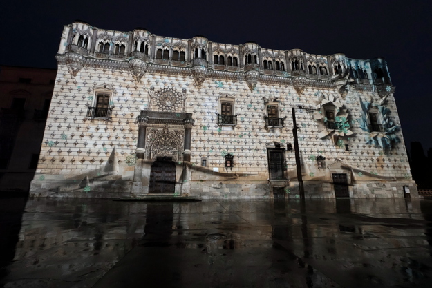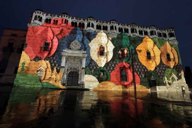 Así su fachada del Palacio del Infantado, terminada prácticamente en el mismo año del Descubrimiento de América por Cristóbal Colón (1492), ha sido el lienzo de esta proyección. Ni su arquitecto Juan Guas hubiera ni siquiera en sus mejores imaginaciones que su obra fuera a ser el principal monumento de Guadalajara y que recibiría tal espectáculo lumínico.