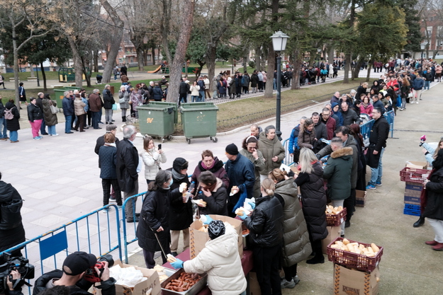 El reparto de bocadillos reúne a cientos de fieles a la trradición. Galería de imágenes de Eduardo Bonilla