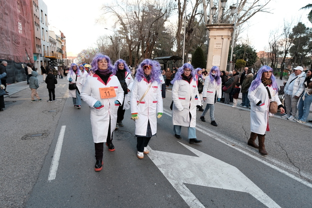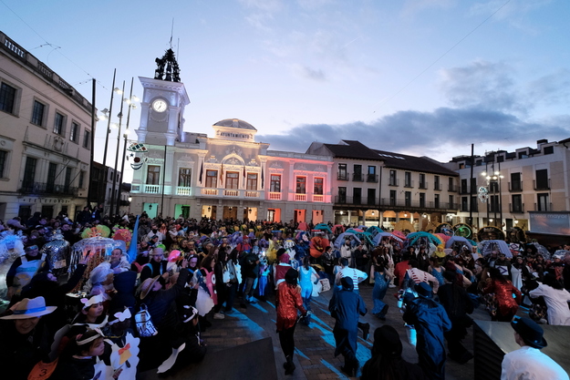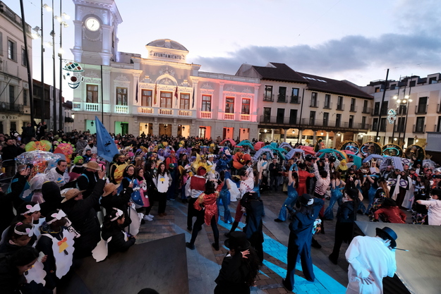 Los disfrazados para la ocasión continuaron por La Carrera, calle Mayor y concluyendo en una animada Plaza Mayor, donde todos los participantes pasaron por el escenario para su evaluación por parte del jurado. Contra las previsiones, la tarde resultó más benévola de lo esperado, favoreciendo la presencia de público durante todo el recorrido.