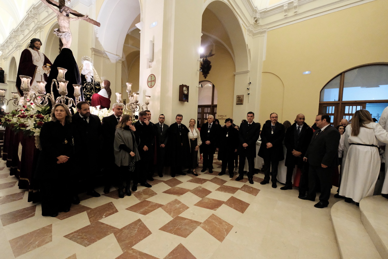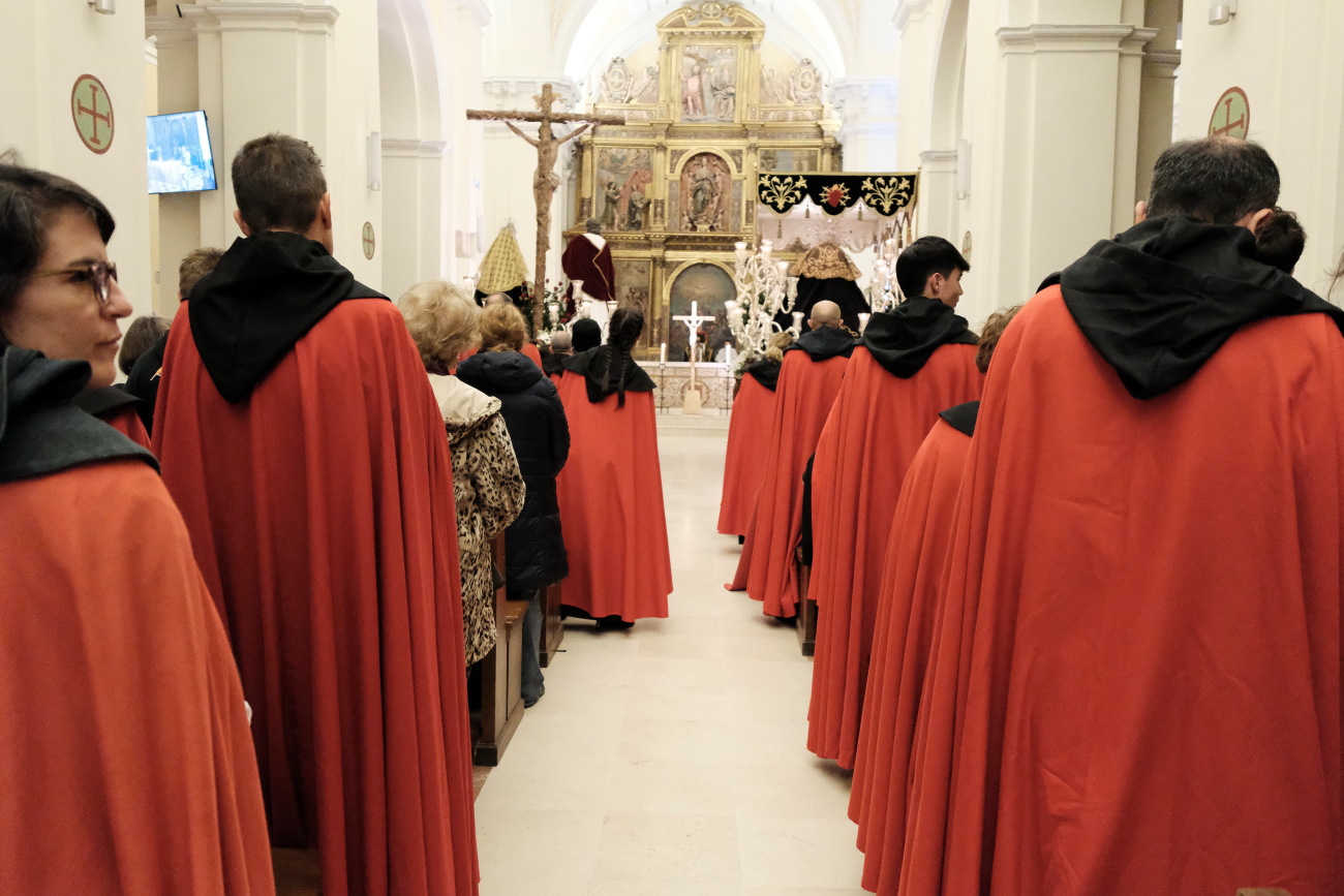 Nada impidió que los cofrades pudieran realizar su recorrido parroquial tradicional por el centro de la ciudad para subir hacia el parque de La Concordia y realizar la estación penitencial en la puerta principal de la Residencia de Ancianos de Santa Teresa Jornet, y continuar luego por la Virgen del Amparo a plaza de Santo Domingo y hasta regresar a la parroquia por la Calle Mayor.