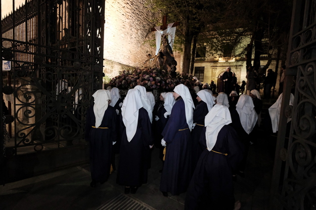 La procesión del Jueves Santo sale a las 11 de la noche y sube por la remodelada calle Miguel Fluiters, Plaza Mayor y Jardinillo, por lo que deben de esperar a que termine de procesionar el paso del Nazareno, que se recoge sobre las doce de la noche en San Nicolás.