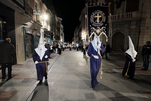 Esta hermandad de Guadalajara, data de los primeros años posteriores a la guerra civil, en noviembre de 1945, cuando se puede hablar del regreso de la Semana Santa a la ciudad, después de que la mayoría de las tallas procesionales fueran quemadas en la guerra civil. En el caso de Jesús de la Pasión, la nueva talla es del maestro Higueras.